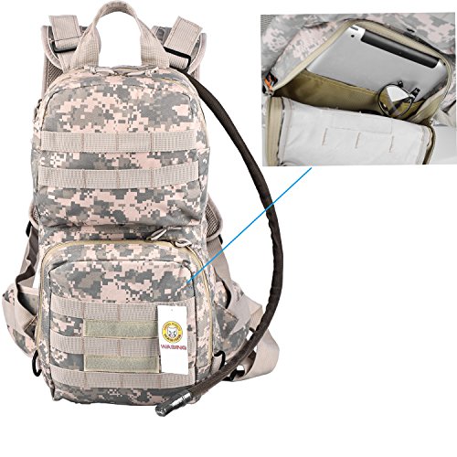 -. Title : WASING Hydration Pack with 3L Bladder and 2 Additional Pockets. Tough Military Style Backpack Is Perfect for Hiking, Biking, Running, Walking and More.