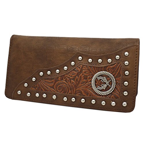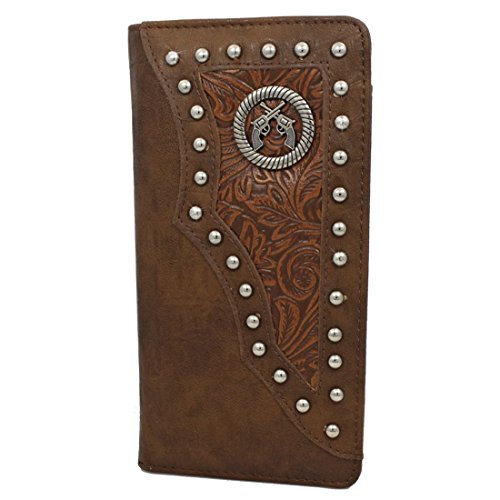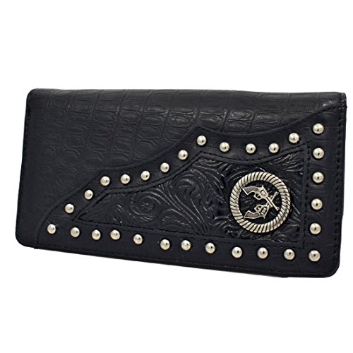 -. Binding : Apparel -. Brand : Show Me Country -. Department : mens -. Feature : Free Matching Checkbook Holder Metal Guns Chocho / 3 Great colors , Black, Distressed Brown and Chocolate Brown / 6 Credit card slots / Clear ID Holder / Measurements: 7" x 3 1/2" -. PackageQuantity : 1 -. ProductGroup : Apparel -. ProductTypeName : ACCESSORY -. Size : 7' L x 3 1/2" W -. Title : Mens Guns Alligator Wallet With Checkbook Holder