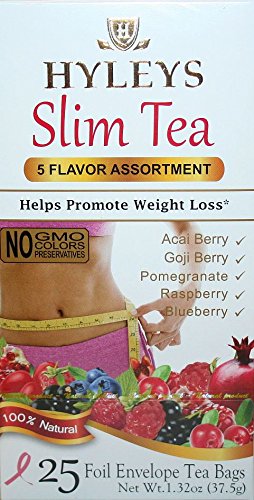 ()/Vitamins Dietary Supplements/Weight Loss/DIRECT FROM USA/Hyleys 100% Natural Slim Tea 5 Flavor Assortment (25 teabags) - 1 PACK