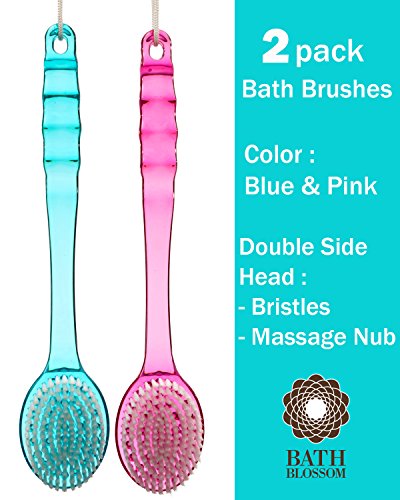 -. Title : Bath Blossom Brush Back Scrubber (2 Pack) - Shower Plastic Bath Brush Double Sided - Massage Cellulite Brush - Suitable for Men and Women