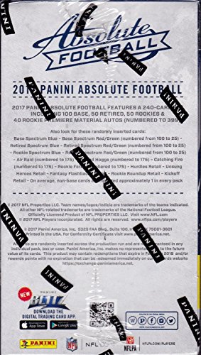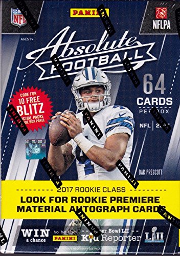 This is a 2017 Panini Absolute NFL Football Series Unopened Blaster Box That Contains 8 Packs with 8 Cards Per for a Total of 64 Cards and a Chance for Rookie Premiere Material Autograph Cards