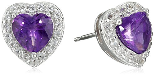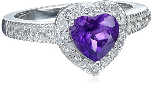 -. Title : Sterling Silver Birthstone and White Topaz Halo Heart Earrings, Ring, and Pendant Necklace Jewelry Set