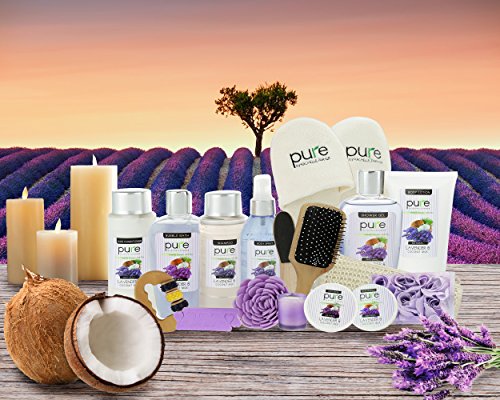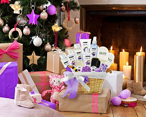 -. Title : PURE Spa Basket! Lavender Coconut Extra Large Spa Gift Basket. Pampering Holiday Gifts for Women!