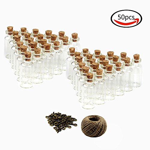 LoveS Small Mini Glass Bottles/Jars with Cork Stoppers & 30 Meters Twine
