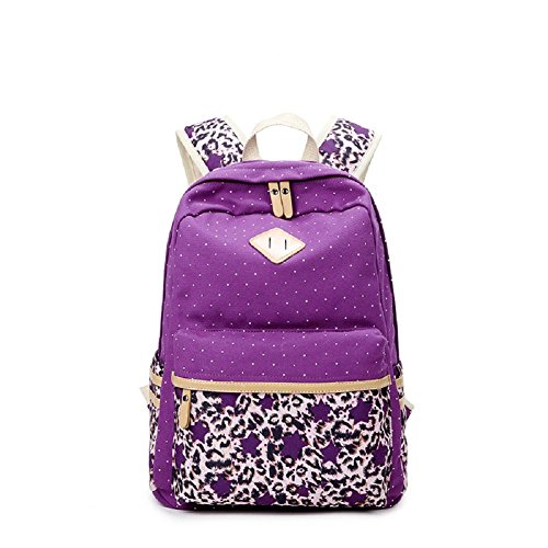 -. Title : Generic Canvas Polka Dots Leopard Pattern Personality Backpack (Purple)