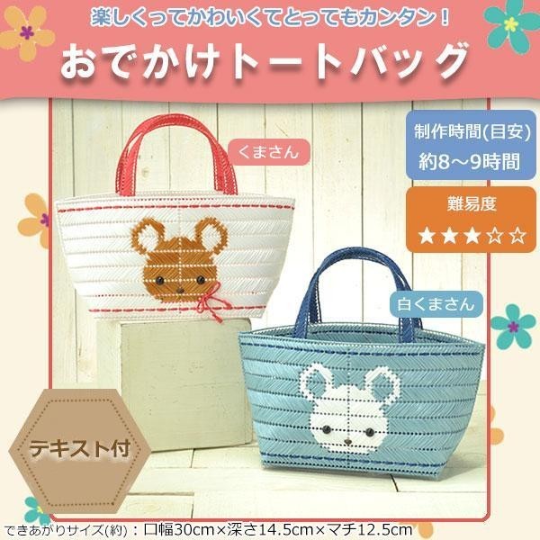 材料とテキストをセットした「手芸パック」です。サイドのくまさん柄や、底面のボーダー柄がとってもキュートなデザインのバッグ♪キャンバスにとじ針でさしていくだけで簡単に作れるので、お子様と楽しくお作りいただけます♪ |