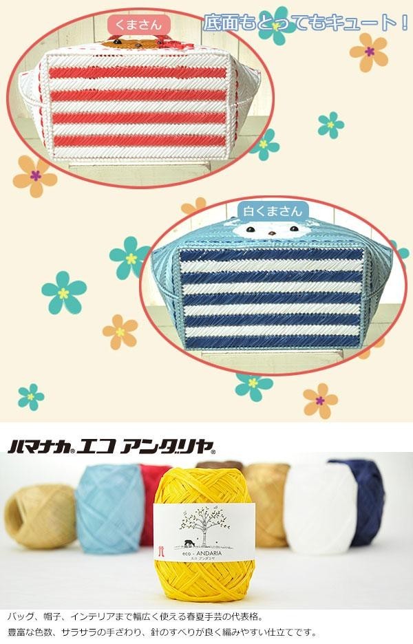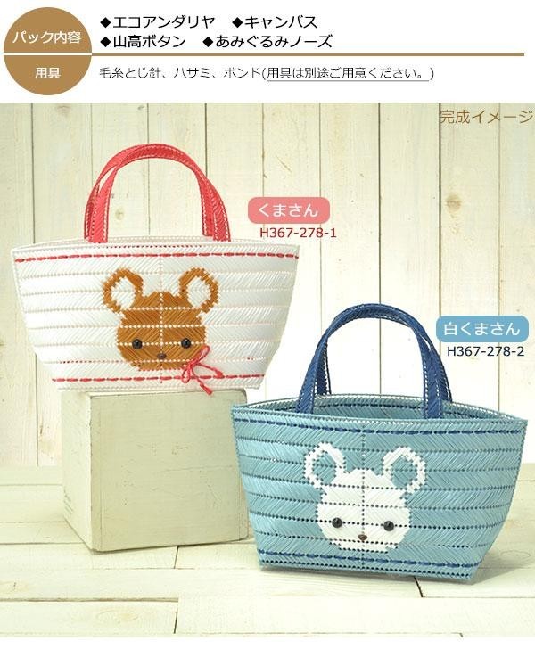 | 材料とテキストをセットした「手芸パック」です。サイドのくまさん柄や、底面のボーダー柄がとってもキュートなデザインのバッグ♪キャンバスにとじ針でさしていくだけで簡単に作れるので、お子様と楽しくお作りいただけます♪ |