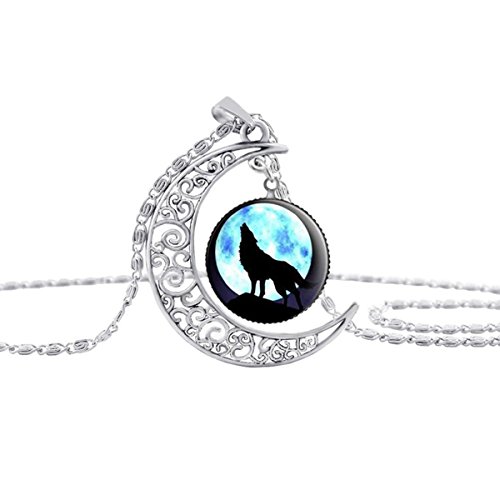 -. Title : Linsh Dome Moon Howling Wolf Time Gems Pendant Necklaces Hollow Out Carved Fashion Jewelry