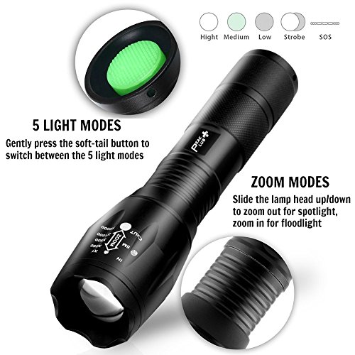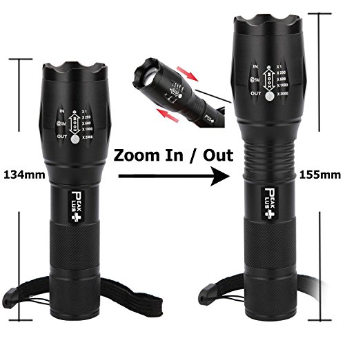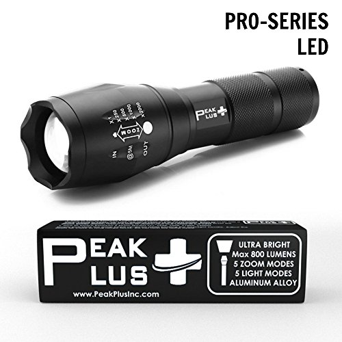 PeakPlus LED Tactical flashlight - Brightest Max 800 Lumens, High Power Zoom 5 Modes With Strobe Torch Light Best For Camping, Survival, Home, Emergency, Self Defense
