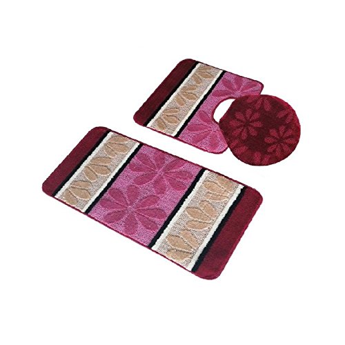 Daniel's Bath & Byound 3PC Over Sized Avanti Bath Mat, Beige/Burgundy