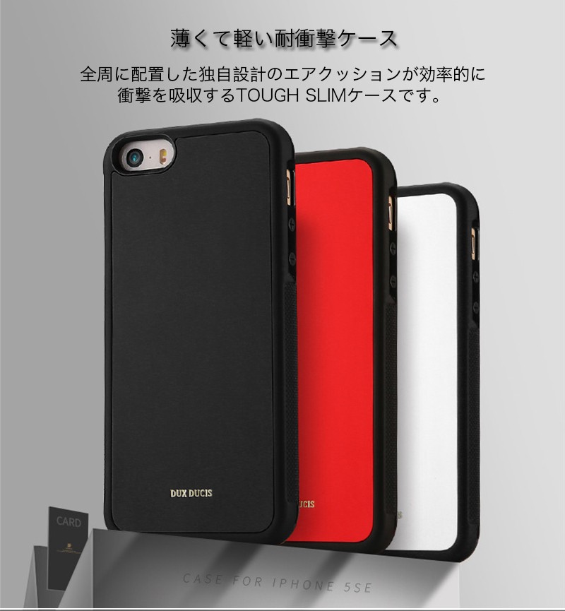★「対応機種」iPhoneSE(アイフォンSE)、iPhone5s(アイフォン5s)、iPhone5(アイフォン5)★「カラー」ブラック(黒)、レッド(赤)、ホワイト(白)★「商品特徴」全周に配置した独自設計のエアクッションが効率的に衝撃を吸収するTOUGH SLIMケースです。TPUと呼ばれる合成樹脂素材を使用、背面にPUレザーを貼り付けながらも分厚くならず、iPhoneを守る強度も十分維持されています。★「キーワード」アイホンSE / アイホン5s / アイホン5 ケース おしゃれ 耐衝撃 カバー オシャレ TPU素材 / PUレザー素材 軽量 薄型 衝撃吸収 シンプル スマホケース マットコーティング ドットパターン設計 丈夫 カメラ/レンズ保護 高い保護力 高級感がありタッチ感も優れています 片手の操作に支えるグリップ感の高いケース 人気デザイン 滑り止め