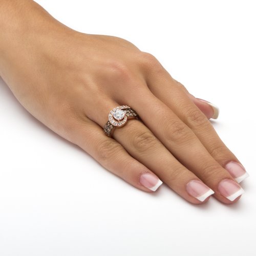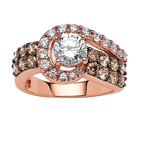 -. Title : Round White and Chocolate Cubic Zirconia Rose Gold-Plated Sterling Silver Swirl Ring
