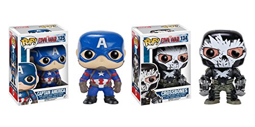 -. Binding : Toy -. Brand : FunKo -. EAN : 0842044100359 -. Feature : With this purchase you will receive 1 Civil War Captain America Funko POP and 1 Civil War Crossbones Funko POP / Each figure is approximately 3.75 inches tall / Each figure comes individually boxed together / This bundle gives you more POP's for your money!! / Collect them ALL!! -. IsAdultProduct : 0 -. Label : Funko -. Manufacturer : Funko -. MPN : 5259908 -. PartNumber : 5259908 -. ProductGroup : Toy -. ProductTypeName : TOYS_AND_GAMES -. Publisher : Funko -. Studio : Funko -. Title : Funko POP Marvel Captain America Civil War: Captain America and Crossbones Toy Action Figure - 2 Piece BUNDLE -. UPC : 842044100359
