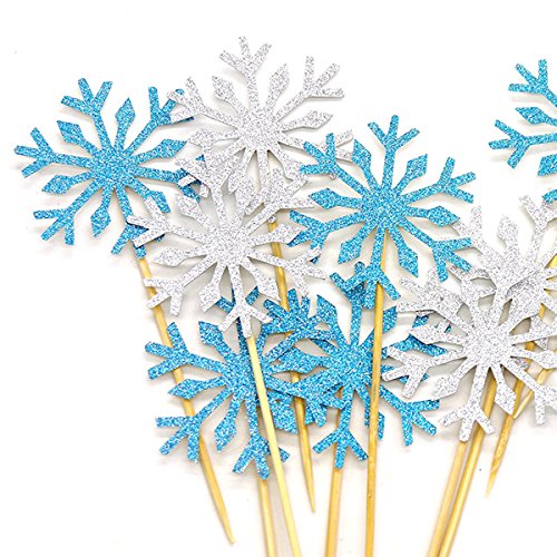 HansGo 40 Pcs Snowflake Cupcake Toppers Gold Glitter Cake Picks Dessert Table Birthday Party Decoration