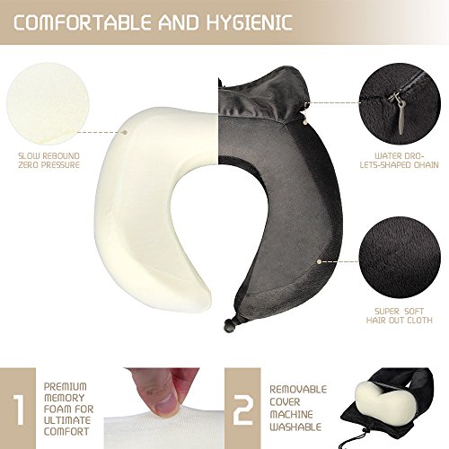 EASY CARE AND WASHABLE - Made out of high quality velour, the COLEMETER Memory Foam Travel Neck Pillow includes a removable and washable cover that makes cleaning a breeze and eliminating germs easily - A best buy if you are lazy to clean everyday!