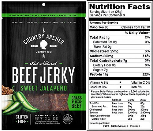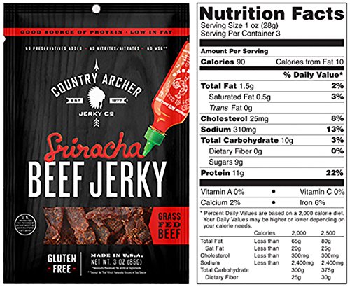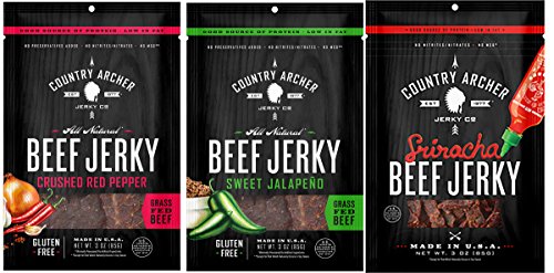 Country Archer Jerky Spicy Beef Jerky Variety Pack of 3 Sweet Jalapeno Crushed Red Pepper Sriracha Beef Jerky