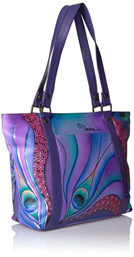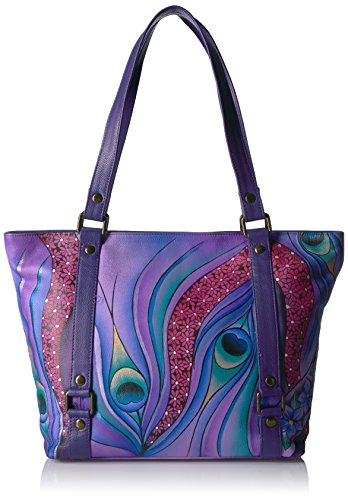 Anuschka Anna Handpainted Leather Classic Large Tote Dreamy Peacock Dewberry