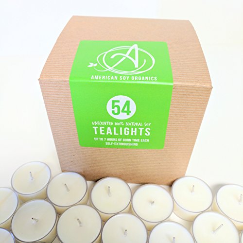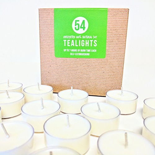 - 100% Natural Soy Wax Tealights: unscented.