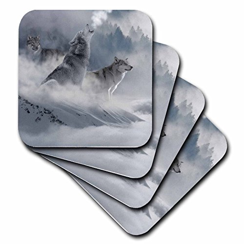 3D Rose Fantasy Wolf Wolves Animal with Clouds Soft Coasters