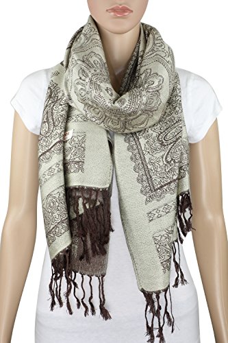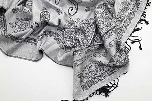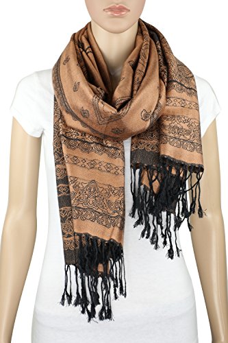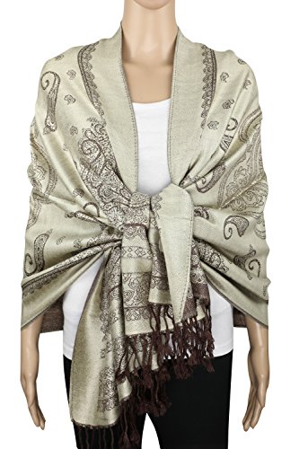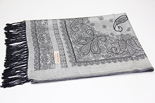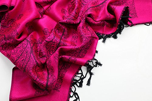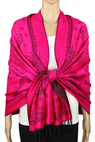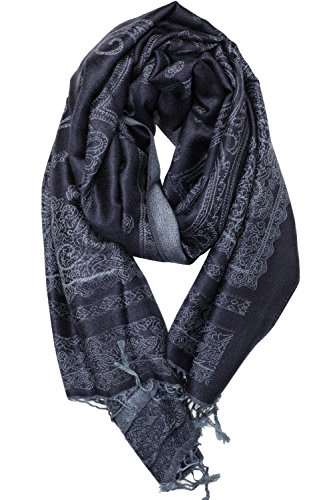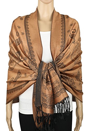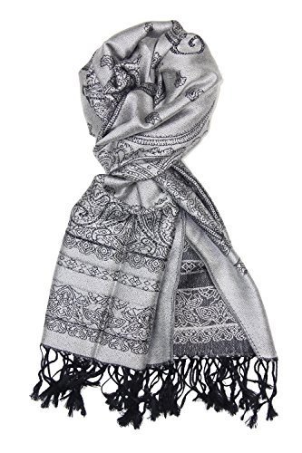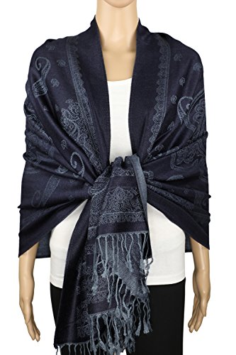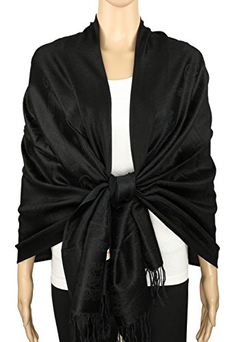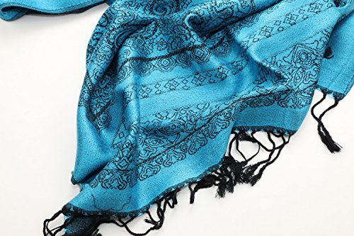 Binding : Apparel Product Description 1. Our pashmina cashmere shawl features classic paisley pattern and reverse design. They are very soft and rich showing off the beautiful flowing paisley designs. 2. It's a generous size, giving several options for wearing. It can be a cape, a shawl, a stole, worn loosely in the crook of your elbows, draped over the shoulders or tied in front. 3. This paisley pashmina is great for taking with you for a light wrap in the evening if you are going to dinner or for putting in your bag on the airplane for wrapping up in if you get cold during a flight. 4. Unique vintage jacquard paisley pattern allows to match more outfits. It can be worn at any formal occasion or a simple scarf worn on a daily basis. Perfect to use as a wrap at a function or as a super cozy scarf during the colder months. Can be worn all year round. 5. This dressy paisley scarf is also the quintessential cover-up for restaurants, theaters, outdoors, parties, work events and dining out, as well as being a beautiful complement to your more relaxed daytime outfit. 6. Lightweight but warm, perfect to take the chill off at evening events without having to put on a coat. They may well become the most versatile piece in your entire wardrobe. 7. Hand washing in cold water using a mild detergent. Wash individually. Squeeze gently and do not twist. Hang to dry or dry flat. 0