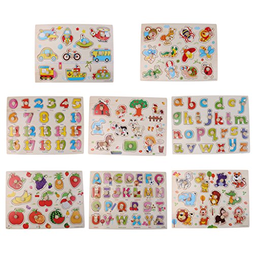 -. Title : MonkeyJack 8 Sets Wooden Peg Jigsaw Puzzle Baby Toddler Preschool Kids Educational Toy