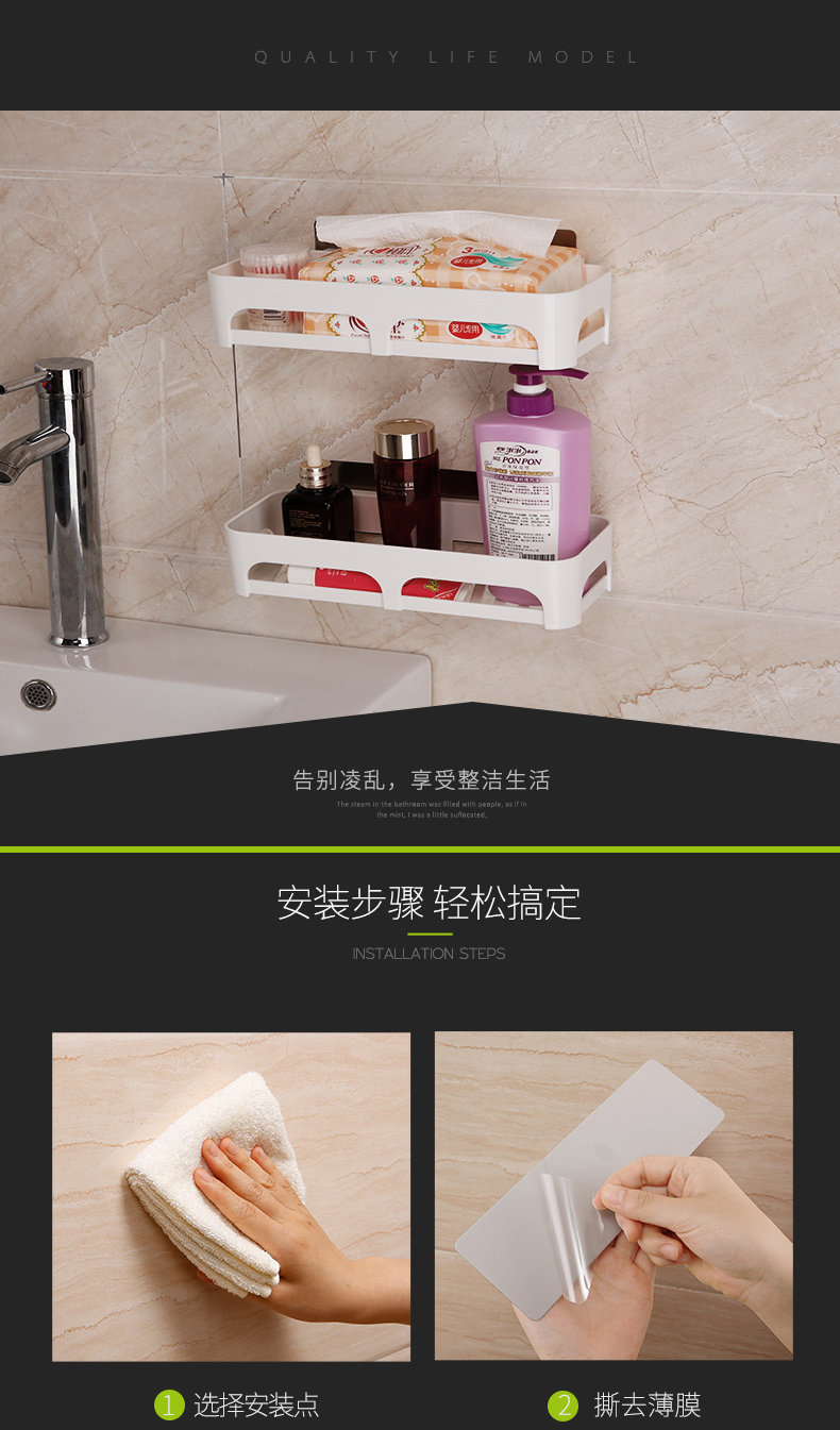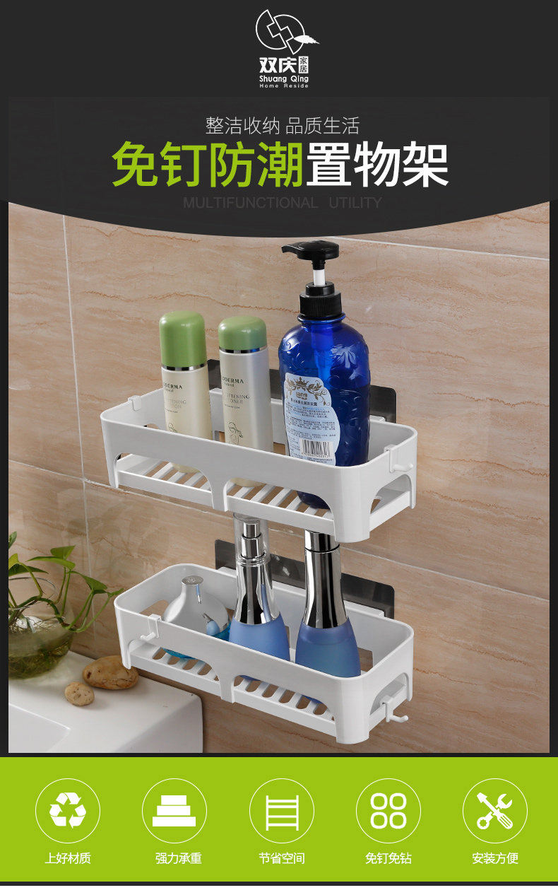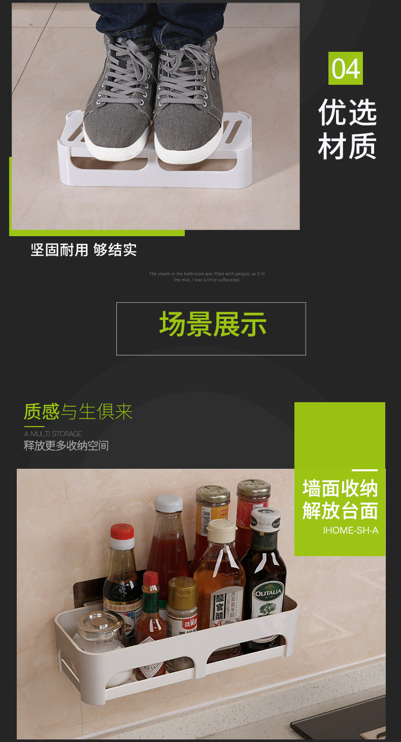 强力吸盘厨房置物架放调味瓶架子壁挂浴室置物架卫生间收纳免打孔