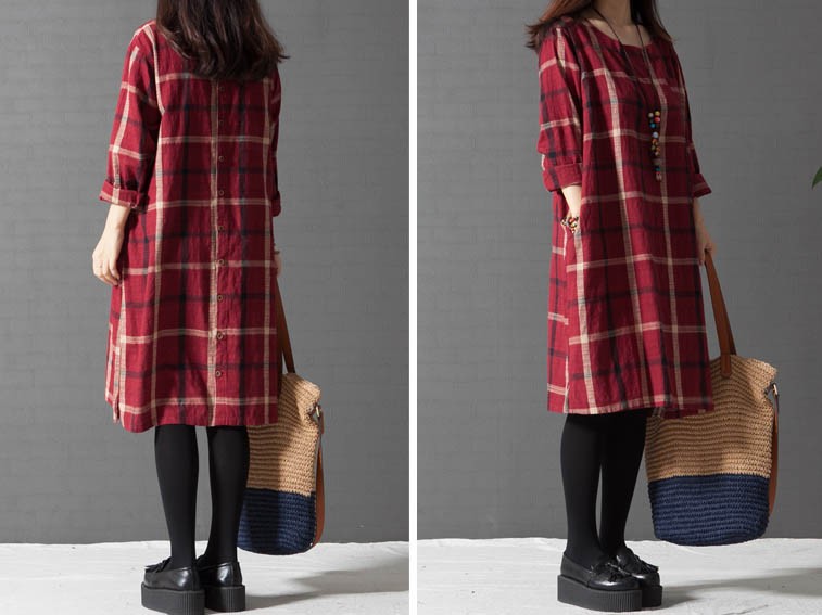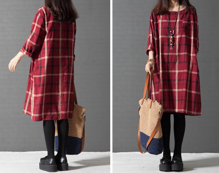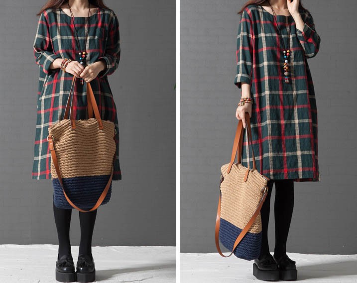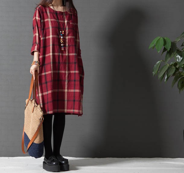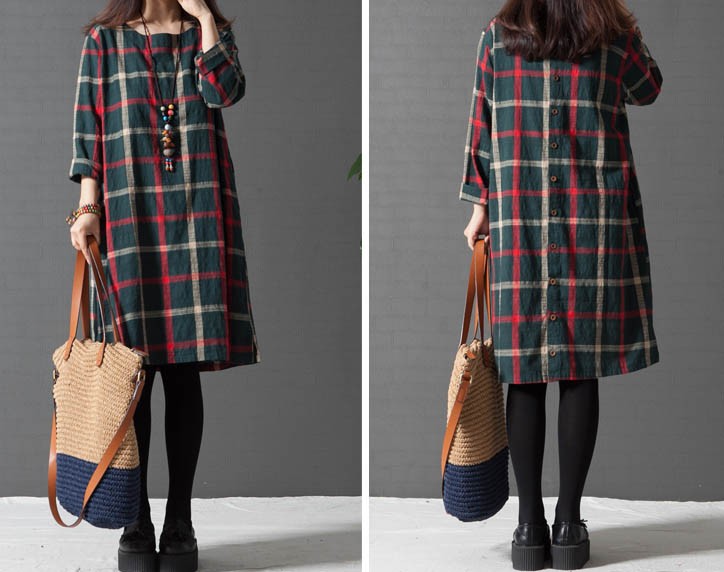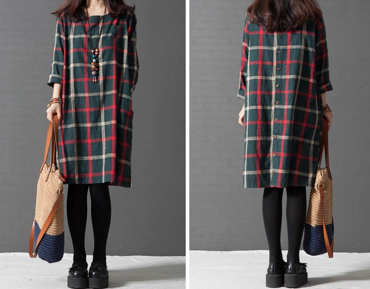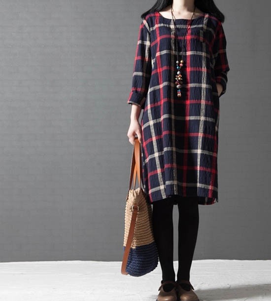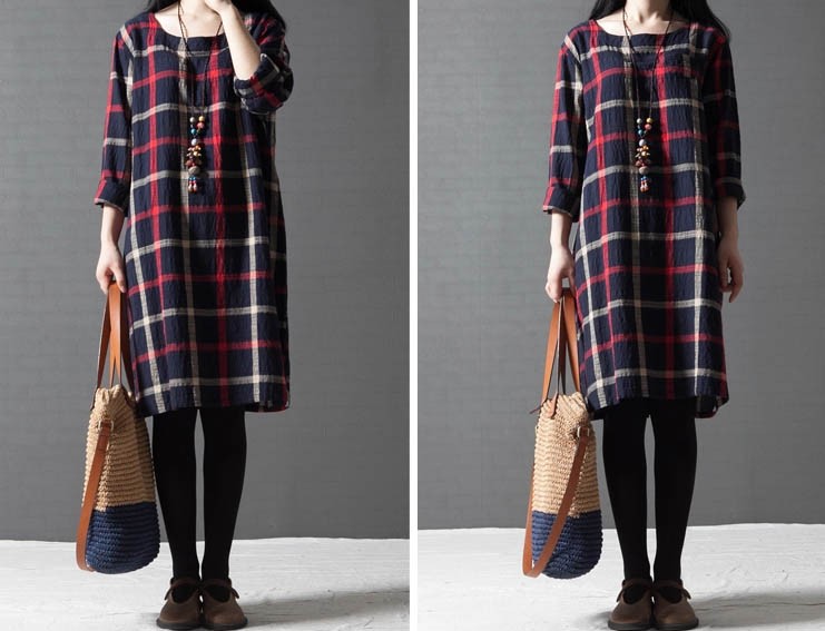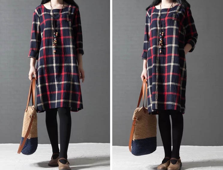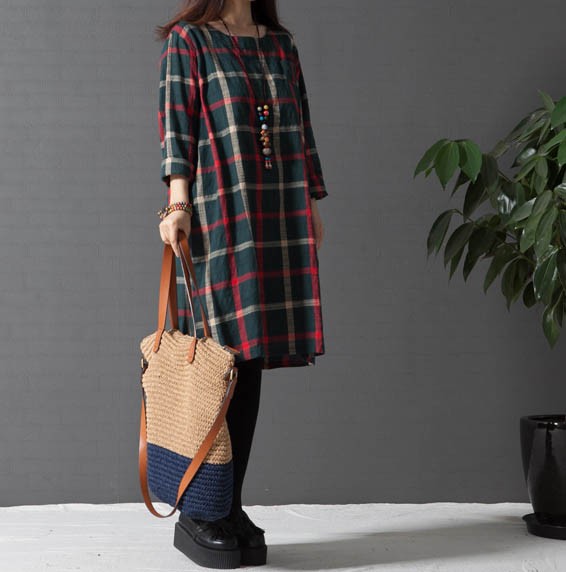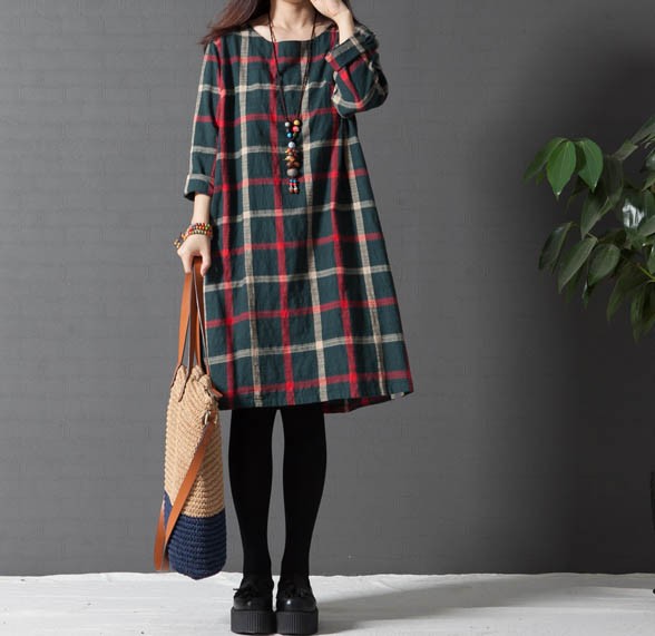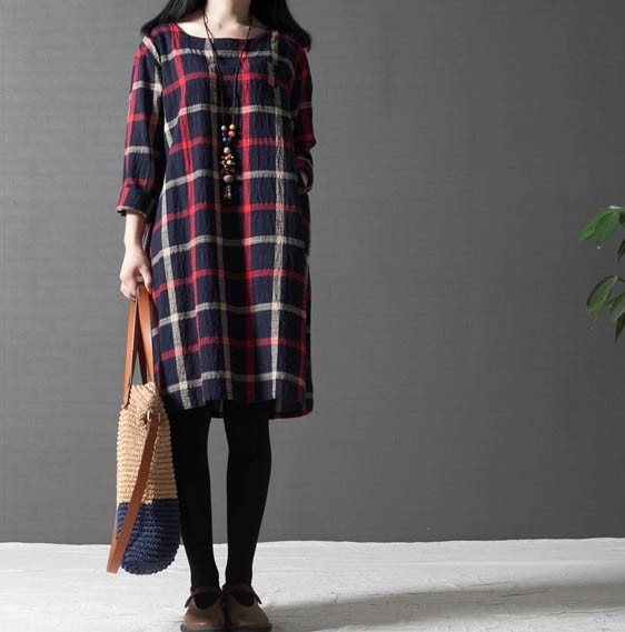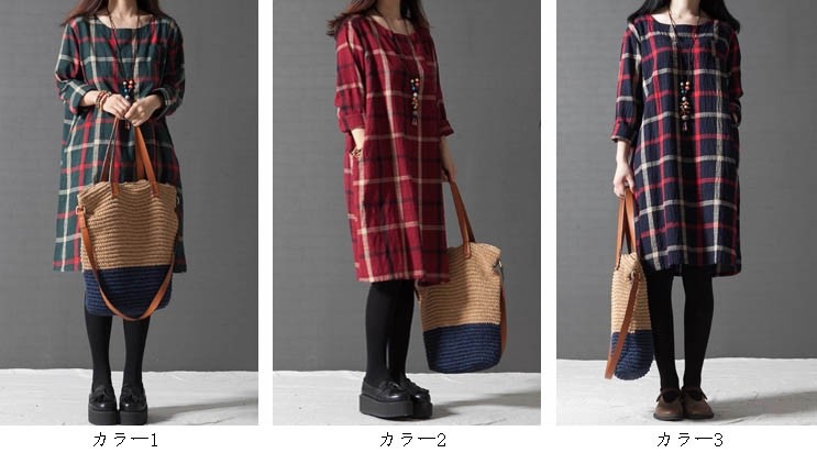 ワンピ ワンピース チェック柄ワンピース ゆったり Aライン ブロックチェック レディス レディース 秋 新作 2017