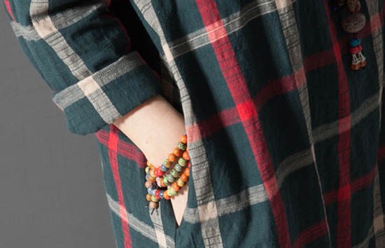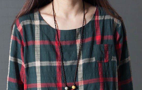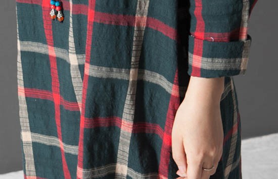 ブロックチェック柄Aラインワンピース