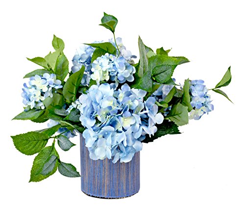 Creative Displays Blue Hydrangea Garden Bouquet in a Weaved Fabric Cover Glass Pot