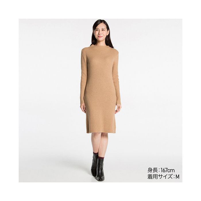 Uniqlo 유니클로 WOMEN 미들 게이지 니트 리브 원피스(긴 소매) - 177917