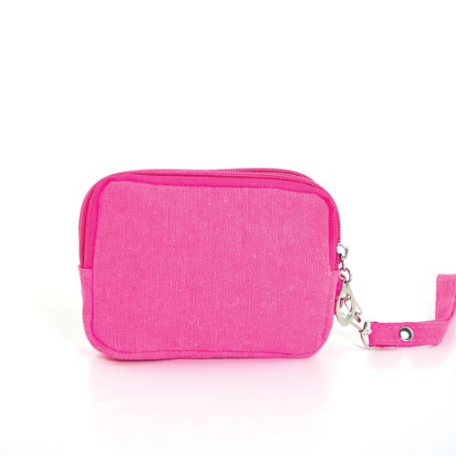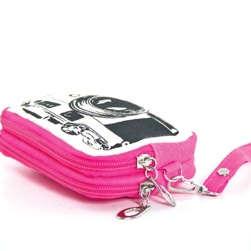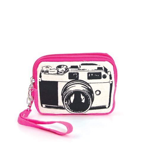 Canvas Mini Wallet Wristlet Bag with Film Camera Image in Fuchsia