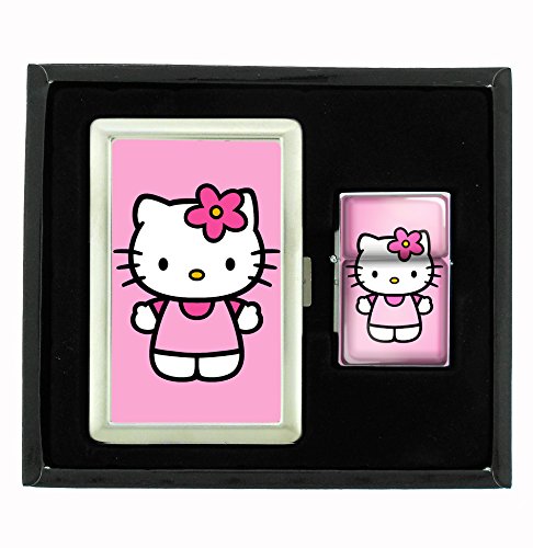 SIZE OF THE OIL LIGHTER IS: 2.25" x 1.5". (Lighter fluid is not included) Please check out some YouTube Videos on how to use a flip top oil lighter. SIZE OF THE CIGARETTE CASE IS: 4" x 2.75". THE CIGARETTE CASE HOLDS 16 CIGARETTES, 8 ON EACH SIDE AND CAN ALSO BE USED AS A METAL WALLET. YOU CAN STORE CREDIT CARDS, CASH, RECEIPTS, ETC