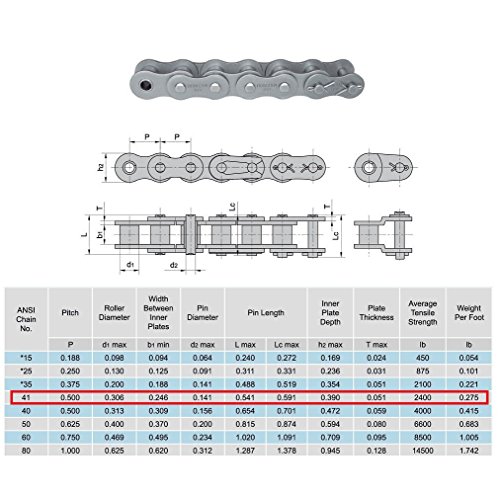 41 Roller Chain 50 Feet with 5 Connecting Links