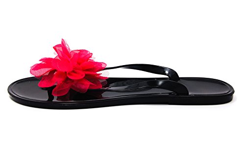 Nufoot Blackberry Flip Flops with Pink Blossom
