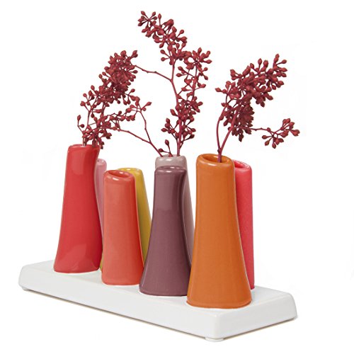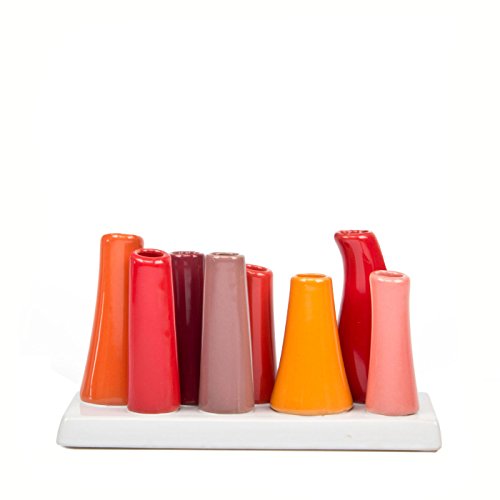 -. Feature : This is a colorful and unique ceramic flower vase for flowers of all kinds. / Each tube on this bud vase is attached to the base. You can fill all 8 tubes and pop your favorite fresh cut flower in each. The low laying rectangle shape makes this the perfect dining table companion. / There are 14 different color options offered for this vase, please see my Storefront so you don't miss out on them! / Made by Chive Inc., they always design the coolest containers! / Flowers and Plants Not Included / 7.25" long, 3" wide, 4.5" tall