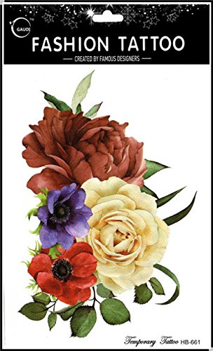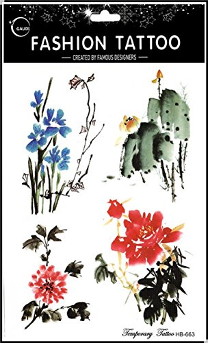 GGSELL GGSELL waterproof and non toxic 4pcs different roses and peony and chinese painting flowers temporary tattoos designs in one package