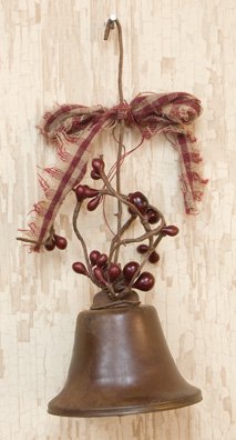 Rustic Liberty Bell Pip Berries Fabric Bow Ornament Country Primitive Christmas Holiday Décor