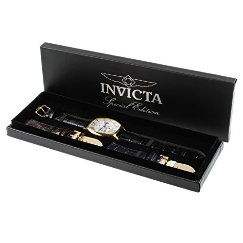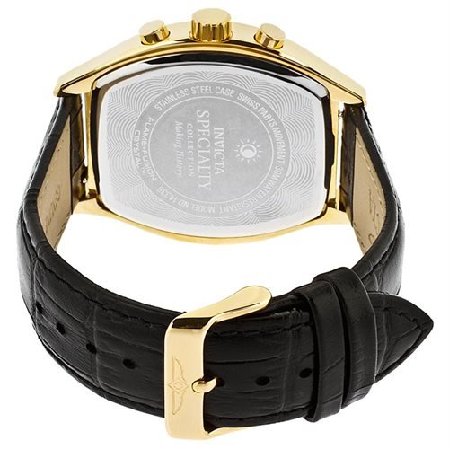 Tonneau-shape watch plated in 18k gold featuring scalloped-texture dial with subdials and date window