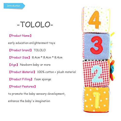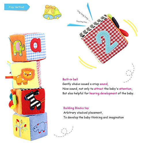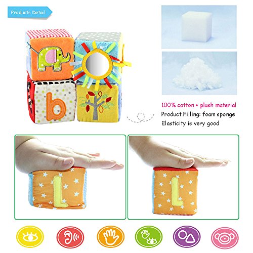 -. Title : TOLOLO 4PC Infant Baby Cloth Soft Animal Rattle Toy; Foam Grab and Stack Building Blocks with Safety Mirror Cubes Toy Set baby Blocks Early Education Toy for 0-3 Years