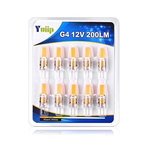 LED G4 Bulb, 1.8 Watt(Equivalent 20 Watt G4 Halogen lamp), 2700K 200LM Warm White, Bi-pin COB AC/DC 12 Volt Landscape Light, International Standard G4 Base 10 Pack Yuiip