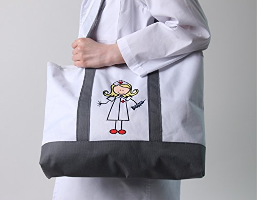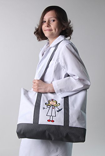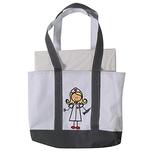 Large Tote Bag. Whether carrying medical equipment or personal essentials, this canvas tote bag is both a practical and fun addition to the healthcare professional's essentials. All bags are made of durable white color nylon canvas material. Unlined with small interior side pocket. Approximately 15" x 10 x 2". Standard size binder fits in bag, not included. Poly/Cotton. Surface washable with a damp cloth. Imported.Feature