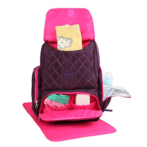 Yodo Diaper Bag Backpack with Insulated Pockets and Wipe Case - Multi-funtion Backpack for Baby Care Travel and Daily Out Walking, Purple
