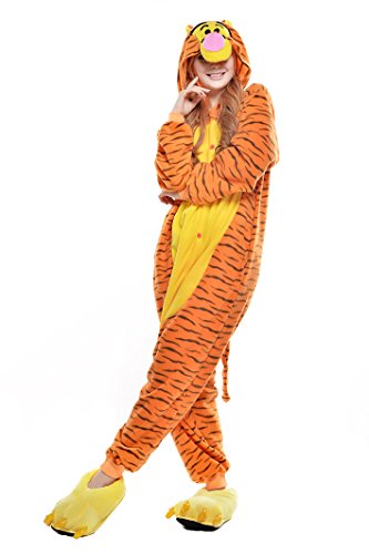 -. Brand : Newcosplay -. Department : womens -. Feature : DETAILS - The adorable and eye-catching animal onesie designs all feature a hood with eyes, teeth, and nose for full effect. Matching tails and chest designs help complete your ultimate cosplay look! Match with a pair of animal slippers (not included) for your next pajama party. / COZY - A special blend of comfort and fun, these plush materials are soft to the touch and will keep you warm during those cold winter months. The button up closure allows you to quickly get dressed while the loose fit gives you the flexibility to easily wear over your existing clothes or jacket. / VERSATILE - Loose fitting materials allow you the flexibility of movement while maintaining style and comfort. The fun and whimsical designs will make sure you get noticed at your next furry convention or party. Carry your remote or keys around with you thanks to two front pockets. / CLEANING - Take good care of your new pajamas to prevent fading! The comfortable polyester material is recommended to be hand washed and laid flat to dry. If ironing is required, it is recommended to do so on Low heat only. / SIZING - Available in sizes Small through X-Large fitting adult heights from 4'9" to 6'2" - Sizes are approximately as follows: (Small) 4'9"-5'2" (Medium) 5'3"-5'6" (Large) 5'7"-5'10" (X-Large) 5'11"-6'2") -. ProductGroup : Apparel -. ProductTypeName : ADULT_COSTUME -. Title : Newcosplay Halloween Cosplay Unisex-adult Costume Anime Pajamas