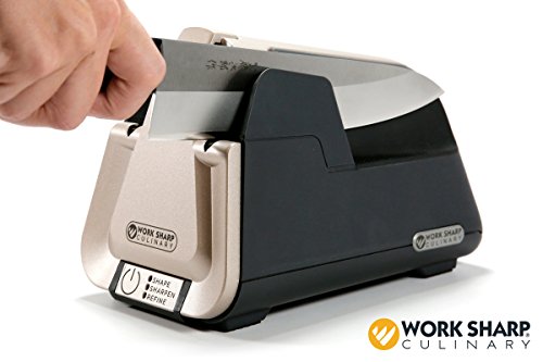 The Work Sharp E3 electric kitchen knife sharpener is a complete kitchen knife sharpening solution for today's kitchens. The E3 includes a 2-Speed electric sharpener for sharpening and refining edges, plus a 2-Stage ceramic honing rod. Based on traditional belt sharpening practices, the E3 creates a sharp-as-new edge the same way manufacturers sharpen knives at the factory. Precision sharpening guides, continuous speeds, and high-performance sharpening belts make the E3 knife sharpener easy, clean, and gentle on knives. Then just a few strokes along the honing rod before prepping your ingredients and your knives are ready to go. Honing preserves the cutting effectiveness of your knives, and extends intervals between sharpening. Maintaining your edges preserves the value of your cutlery, and lets you continue to enjoy the art of cooking! Work Sharp culinary is dedicated to supporting our customers. We are happy to answer any questions regarding our kitchen knife sharpeners and any questions you may have about keeping your knives sharp as new.Feature