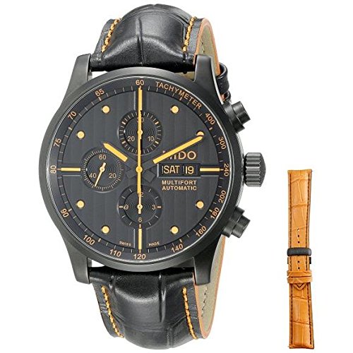 -. Title : Mido Men's MIDO-M0056143605122 Multifort Analog Display Swiss Automatic Black Watch with extra orange band