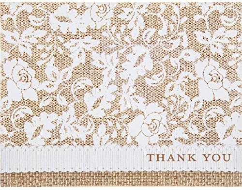 - Country Lace and Floral on Burlap Thank You Cards & Envelopes, 50 sets