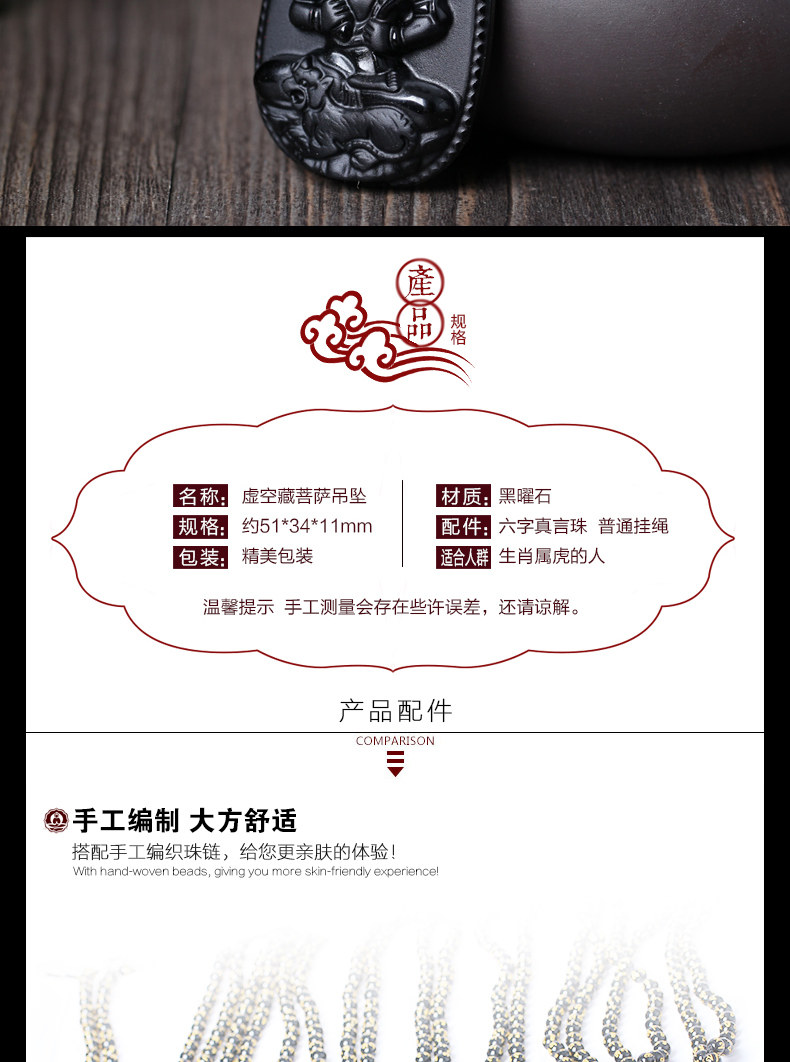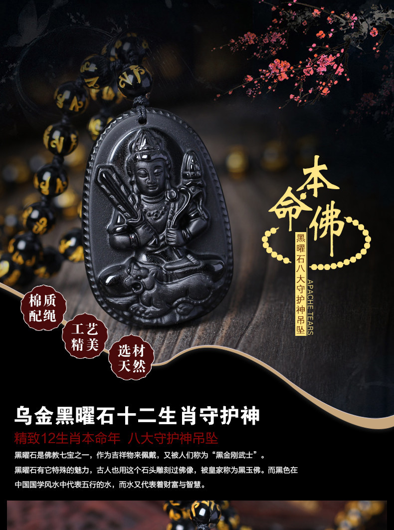 开光925银包冰种黑曜石十二生肖属虎本命佛守护神虚空藏菩萨吊坠