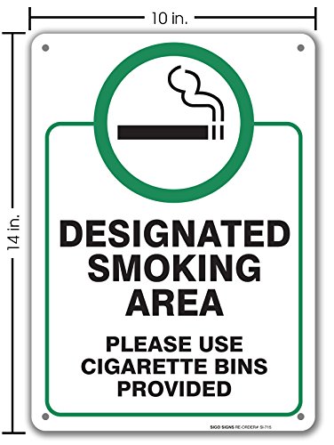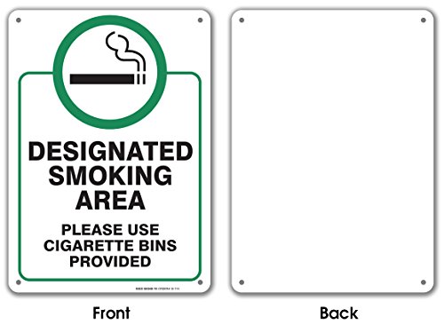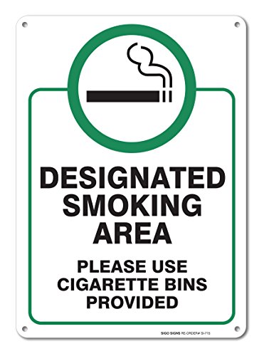 Designated Smoking Area Sign, Large 10x14" Aluminum, For Indoor or Outdoor Use - By SIGO SIGNS