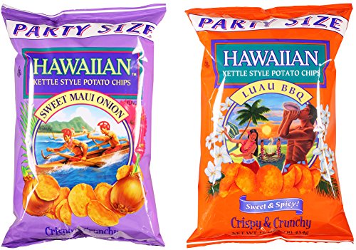 Hawaiian Kettle Chips Variety Bundle: (1) Sweet Maui Onion Kettle Style Potato Chips 16oz, (1) Luau BBQ Kettle Style Potato Chips 16oz (2 Pack Total)