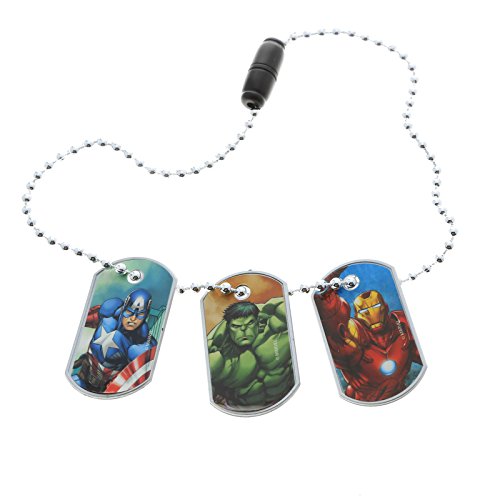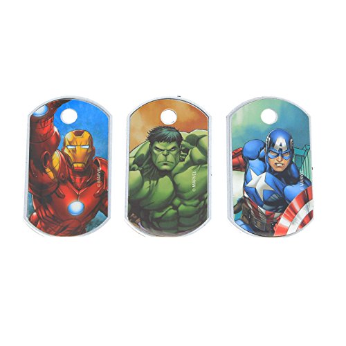 Includes: 3 Avengers dog tags; The Hulk, Iron Man, Captain America and 1 chain